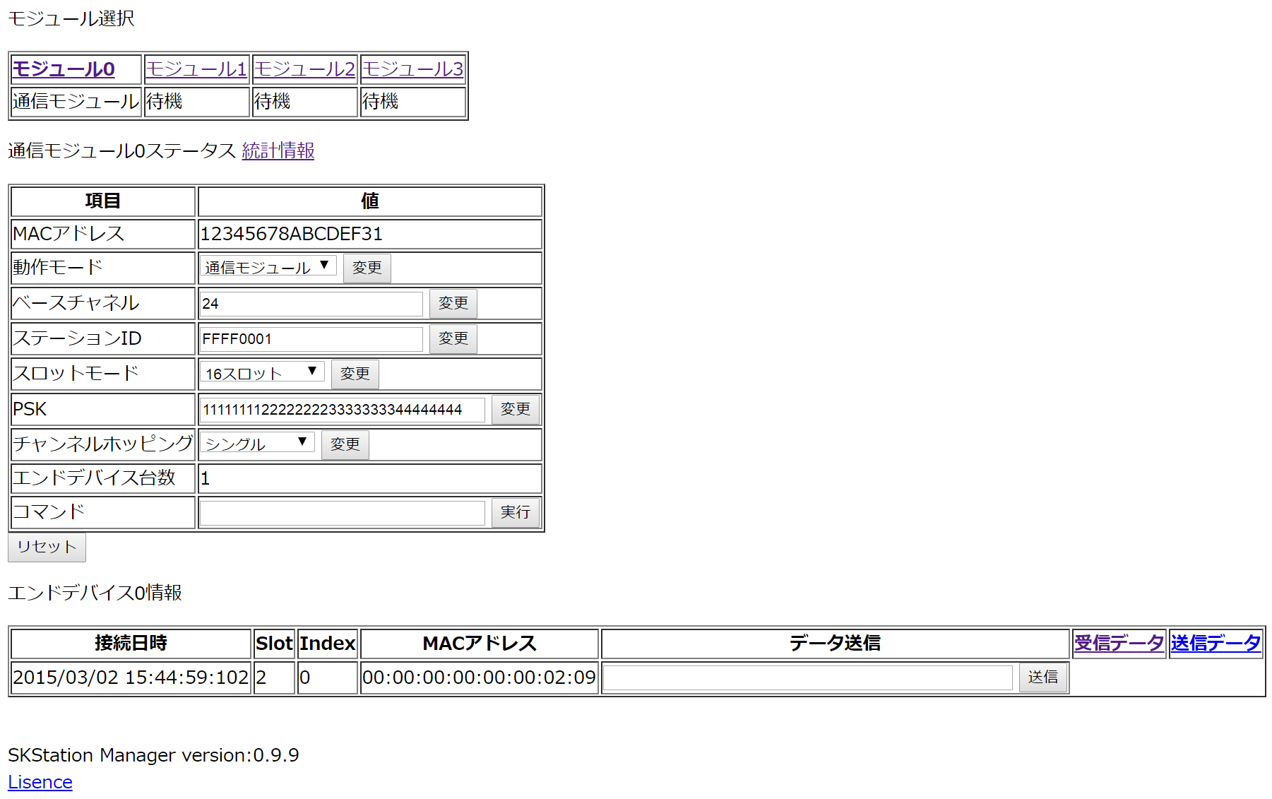 | SKSEND ...(省略) | 親機へのデータ送信コマンド(上述) |
